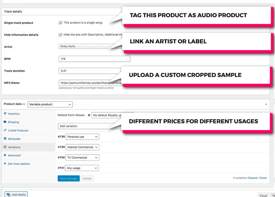 Kentha adds some special WooCommerce features that nobody else has, to create the perfect music shop to sell: